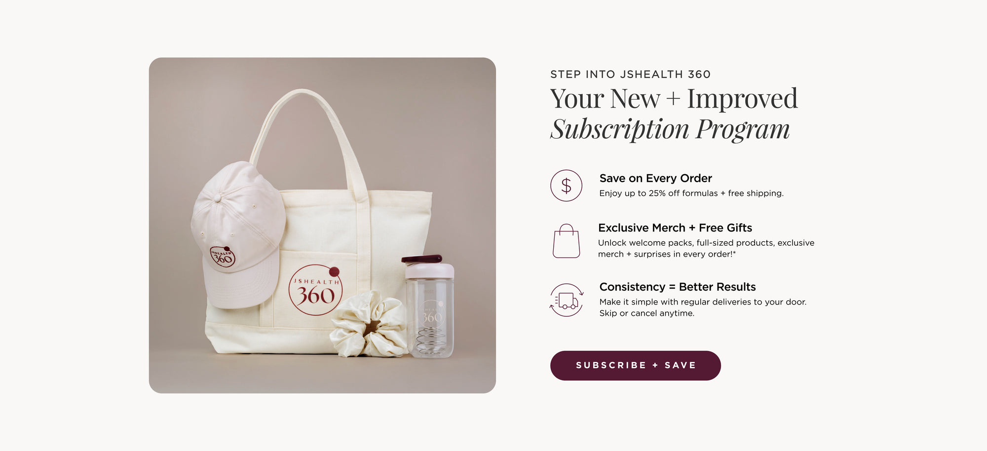 Welcome to our inner wellness circle. You're in the loop! Our exclusive JSHealth 360 Subscription platform is designed to help you embrace a 360-degree approach to your health. From exclusive content to personalized support, JSHealth 360 surrounds you with everything you need for lifelong wellness.