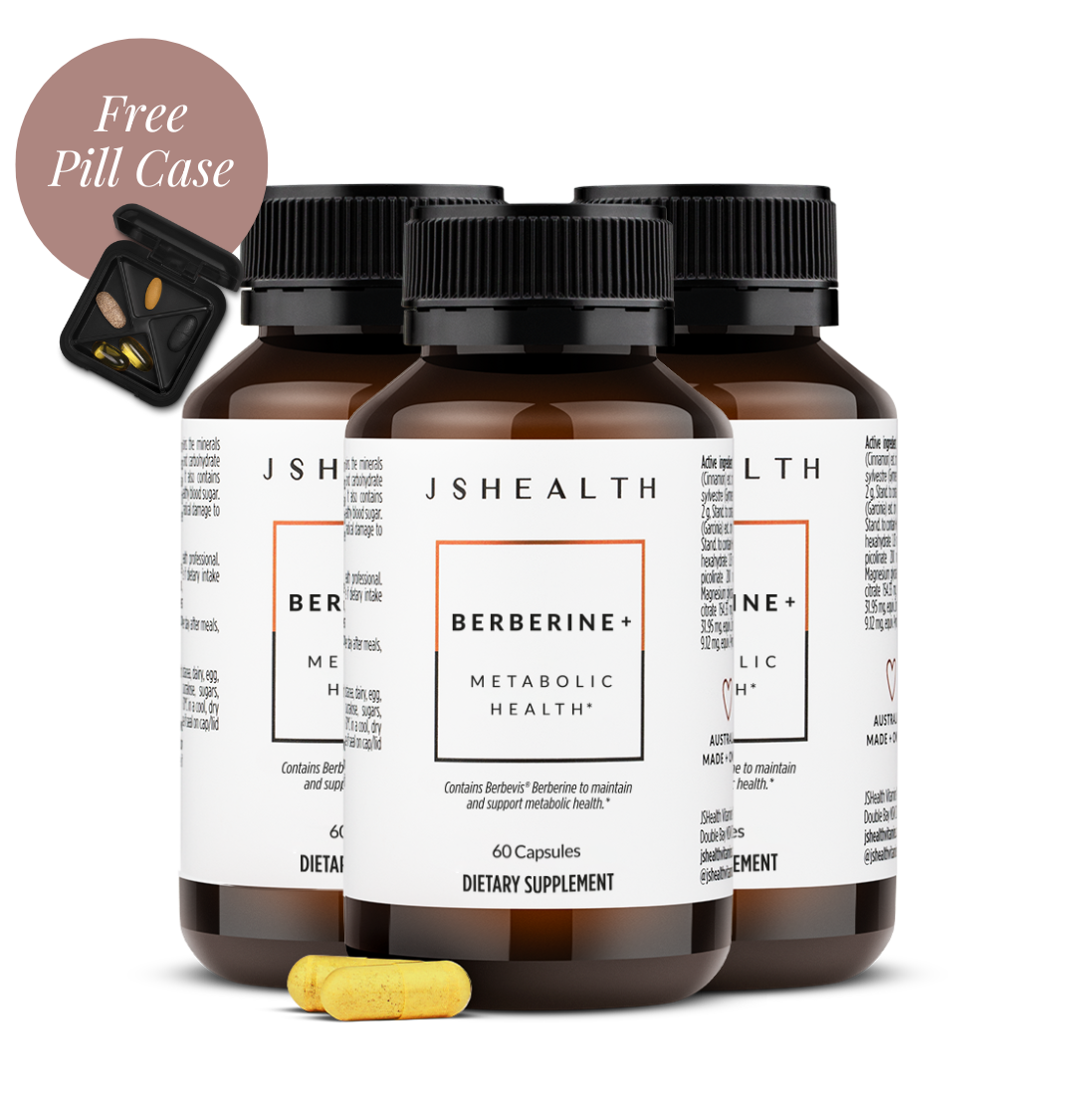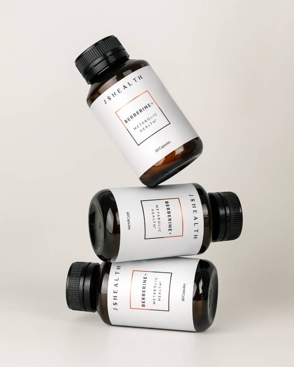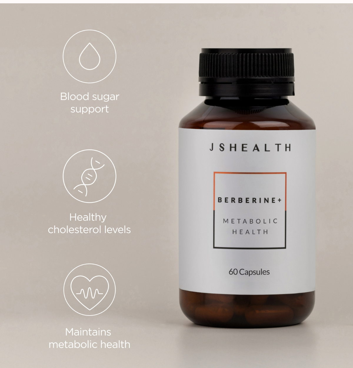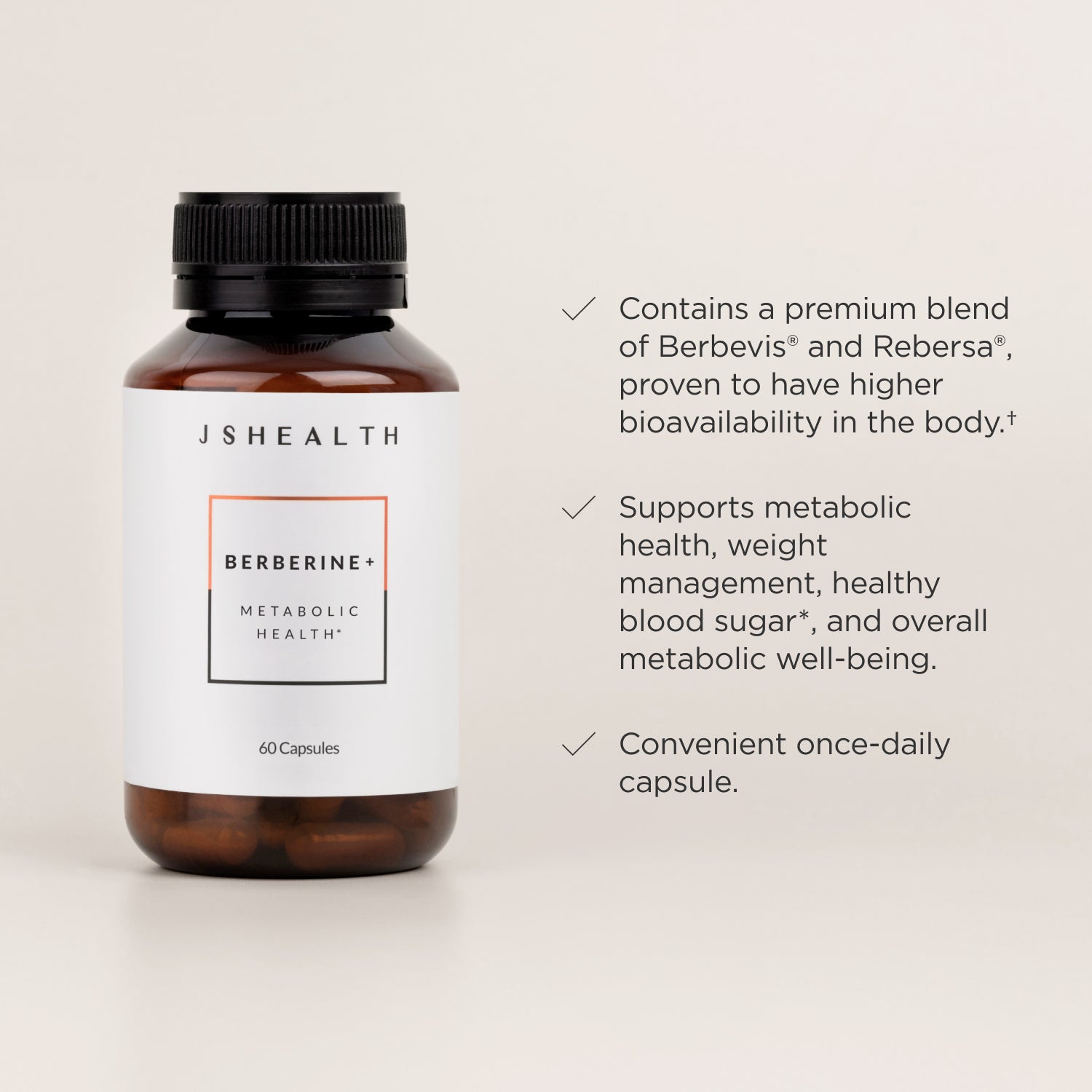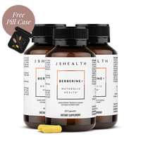 The JSHealth Berberine+ formula contains Berbevis® Berberine phospholipid, Rebersa® Berberine hydrochloride, and Gymnema.