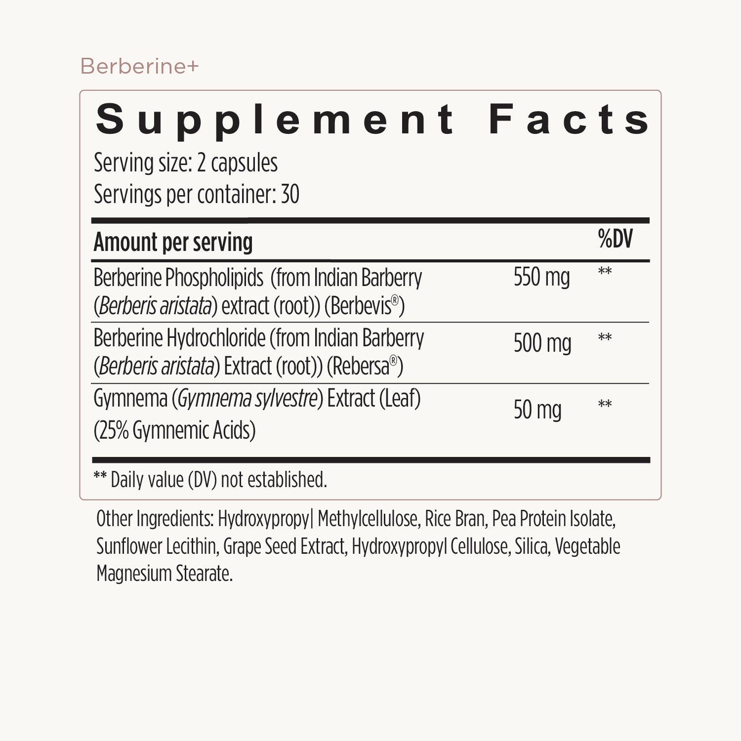 Berberine+ contains a premium blend of Berbevis® Berberine phospholipid and Rebersa® Berberine hydrochloride to maintain and support metabolic health. When already in the normal range, these ingredients also help support healthy cholesterol levels and help in the maintenance of healthy blood lipids. Additionally, Rebersa® Berberine hydrochloride helps maintain and support healthy blood glucose, and assists sugar and carbohydrate metabolism already in the normal range.*