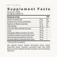 Calm + De-Stress Formula - 60 Tablets. Australian Formulated. Vegan. Non-GMO. Heavy Metal Tested.