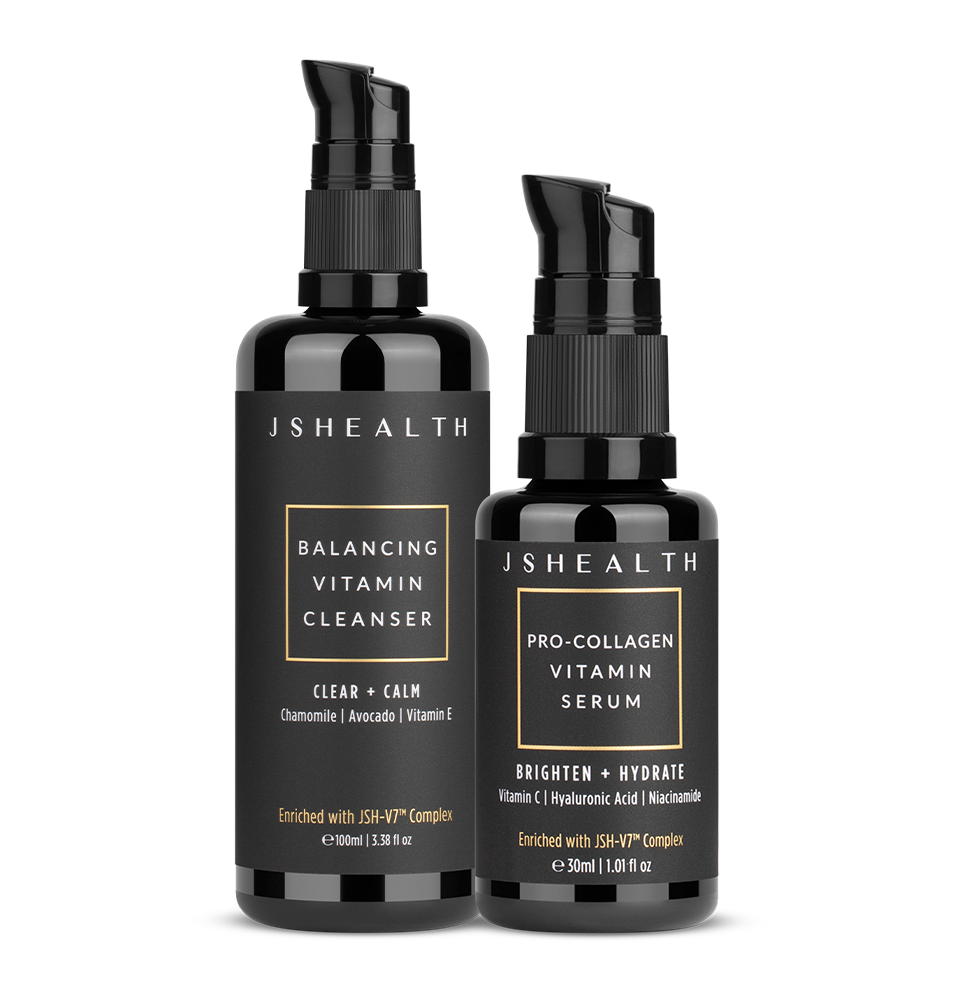 The Balance + Brighten Bundle contains the Balancing Vitamin Cleanser and Pro-Collagen Vitamin Serum designed to balance, cleanse, deeply hydrate, brighten and plump your skin.