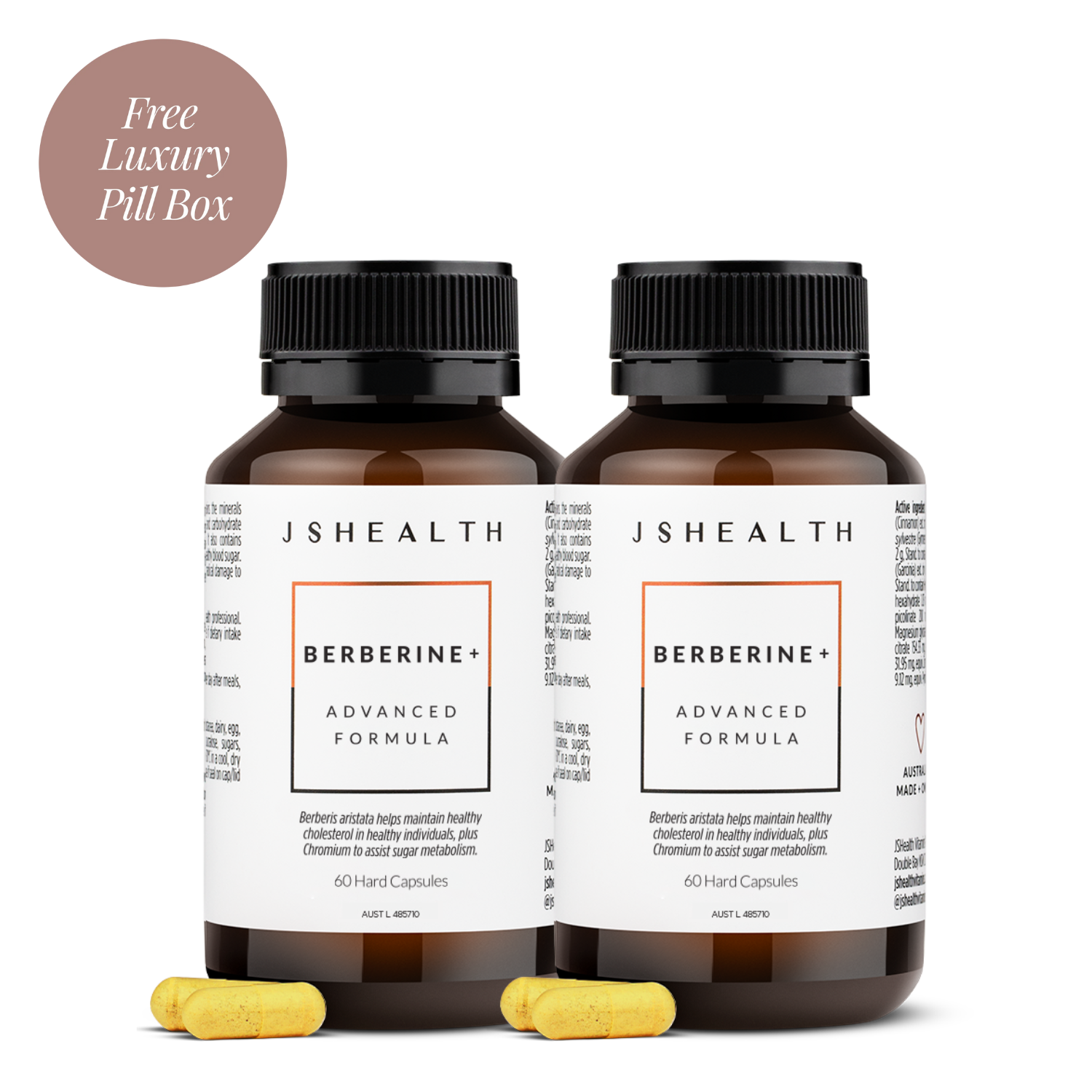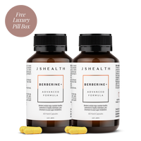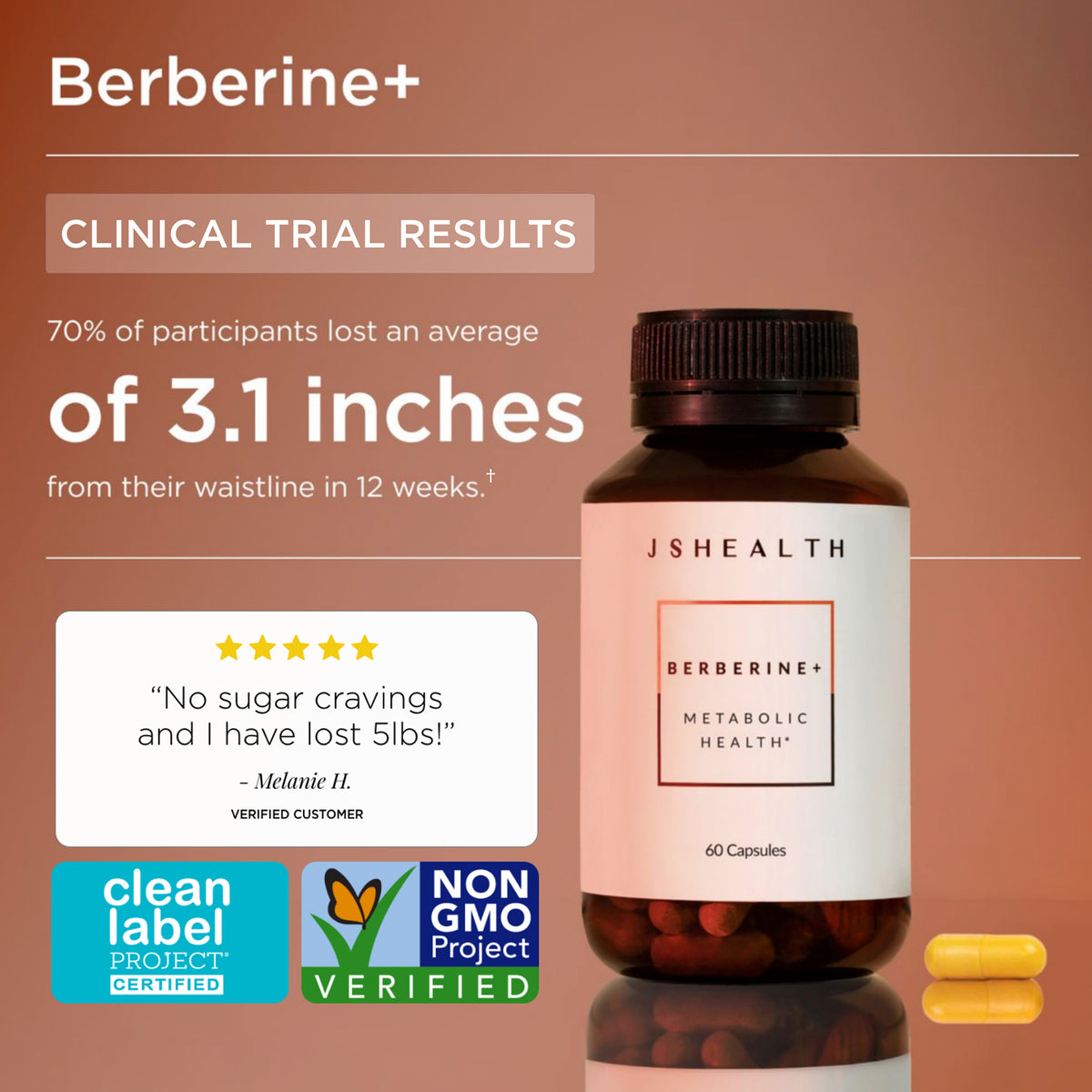 The JSHealth Berberine+ formula contains Berbevis® Berberine phospholipid, Rebersa® Berberine hydrochloride, and Gymnema.