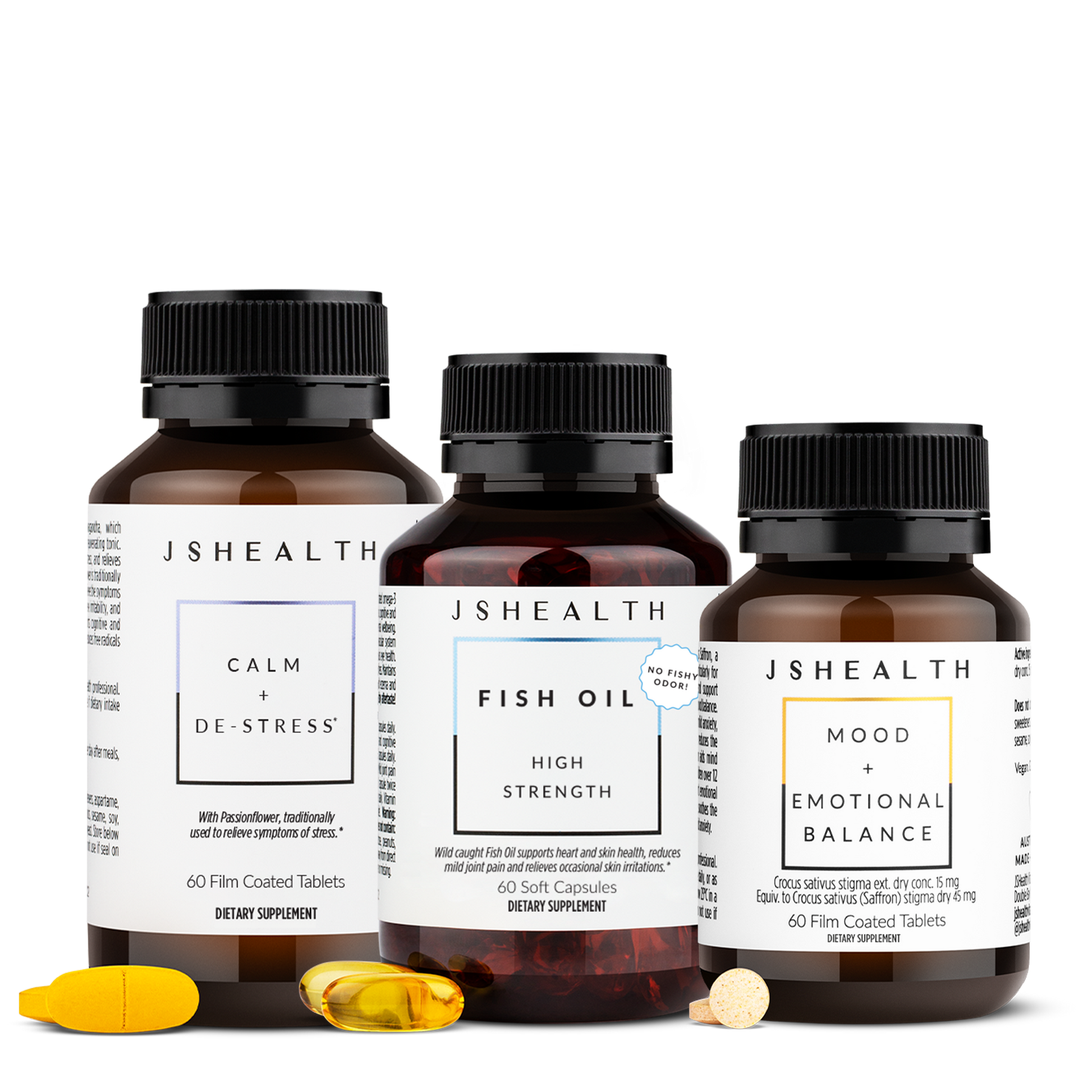 Jess' ultimate trio for a peaceful mind. Our Calm Mind Trusted Trio contains the Calm + De-Stress, Mood + Emotional Balance, and Fish Oil (60s) formulas.