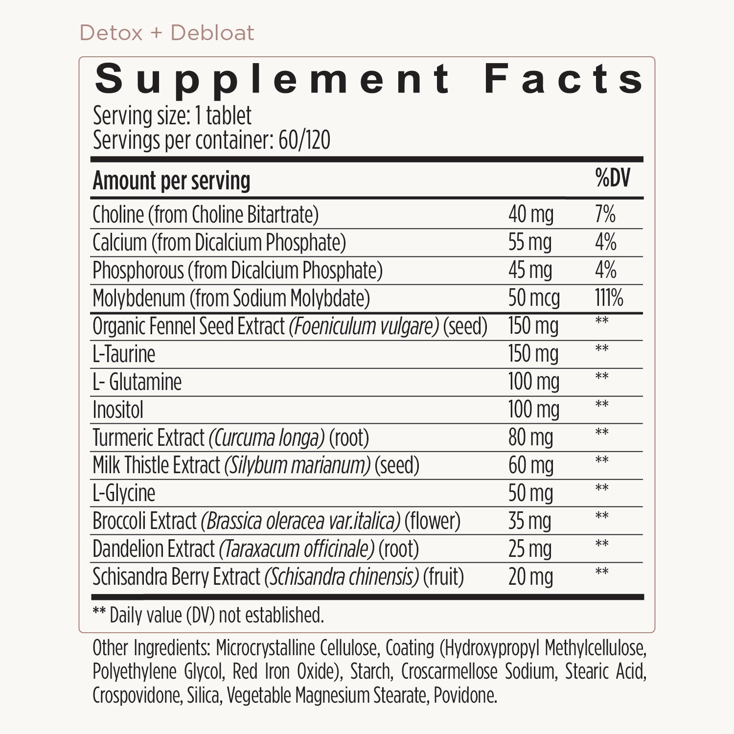 Detox + Debloat contains Milk Thistle, which is traditionally used to maintain and support natural liver cleansing and detoxification processes. Turmeric maintains and supports liver health. Fennel is traditionally used to reduce and relieve abdominal bloating and distention, plus relieve abdominal discomfort.*