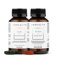 Contains 2 “Digestion Support” favorites, Skin + Digestion formula and Detox + Debloat formula.