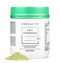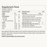 The JSHealth Daily Supergreens formula contains selected greens ingredients along with hydrolyzed Marine Collagen peptides.