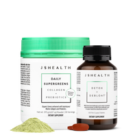 Jess' ultimate pair to refresh and replenish your gut health. The Gut Refresh Perfect Pairing contains our Greens + Collagen and Detox + Debloat products.