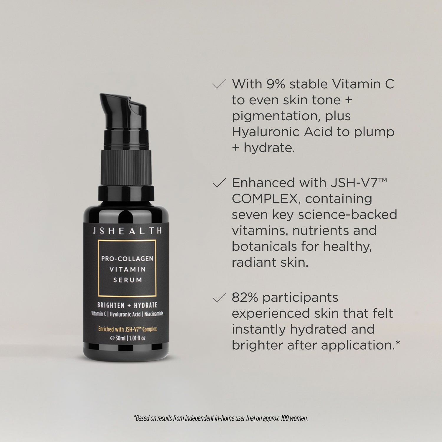 This formula is infused with the signature JSH-V7™ Complex, containing seven key science-backed vitamins, nutrients, and botanicals for healthy, radiant skin.