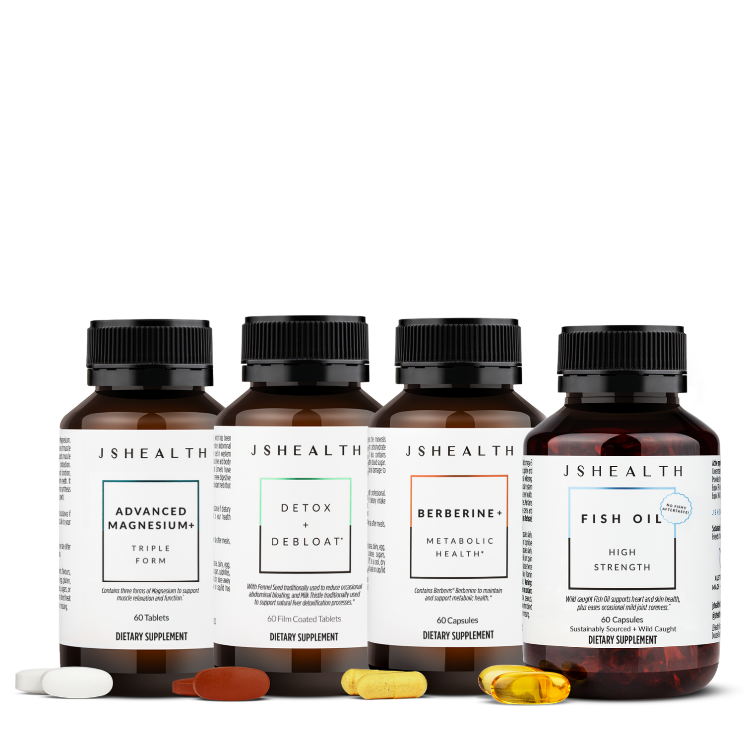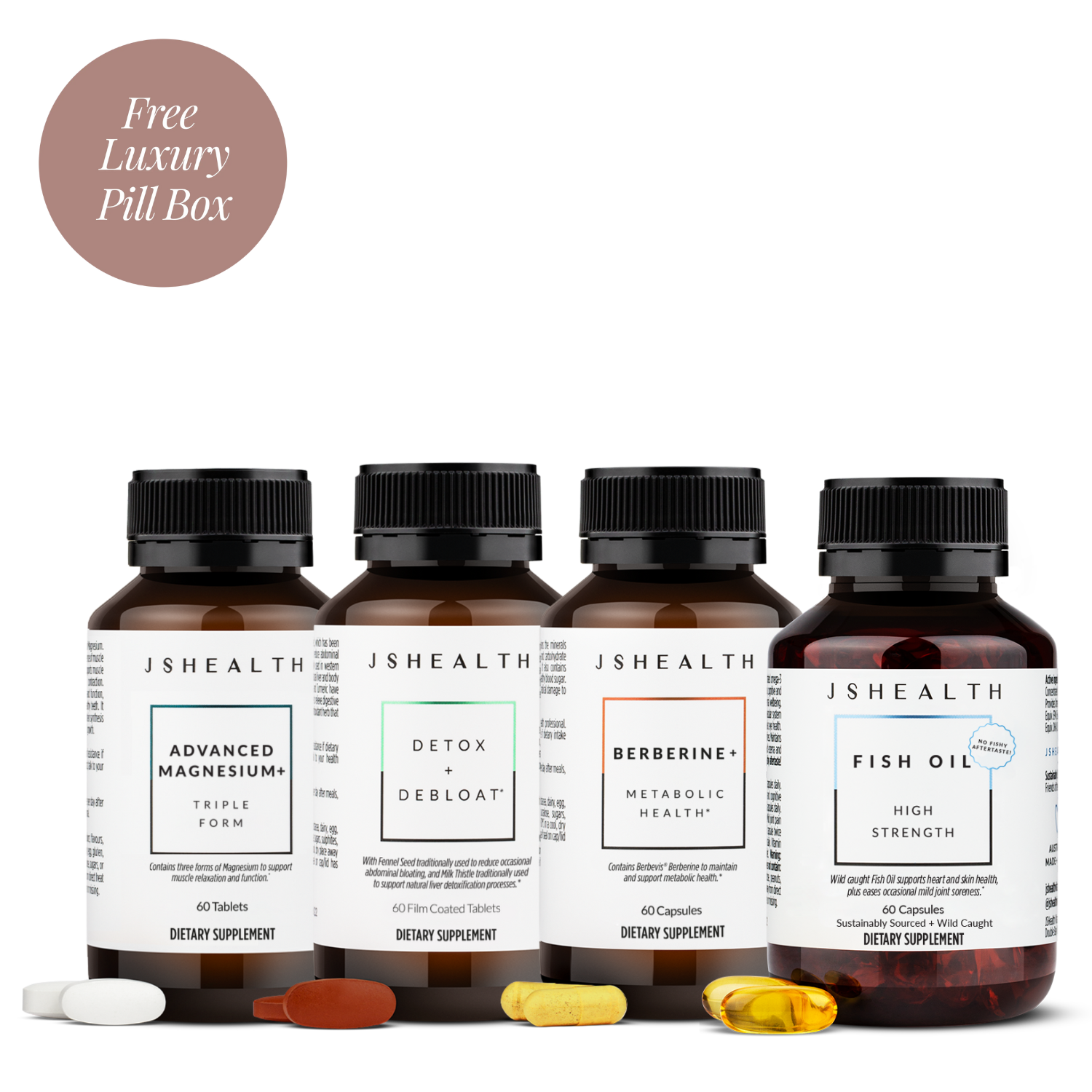 Contains our best selling formulas Detox + Debloat, Fish Oil+ and Advanced Magnesium+, Berberbine and Probiotic+ to support your confidence and comfort.