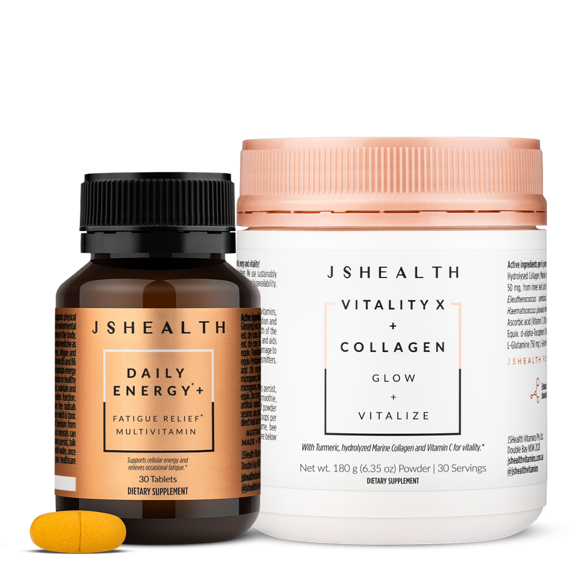 Jess' ultimate pair for a radiant and energised morning routine. The Morning Ritual Perfect Pairing contains the AM+ Stress + Energy Levels formula and Vitality X + Collagen.