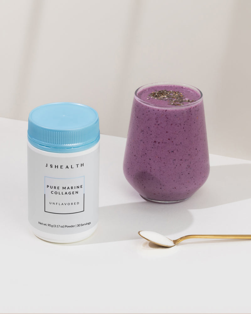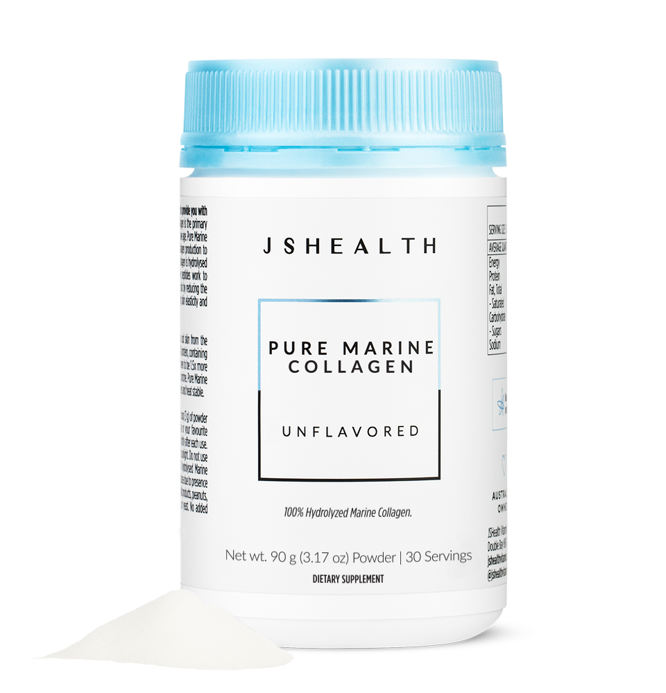 The JSHealth Pure Marine Collagen formula contains hydrolyzed Marine Collagen peptides.