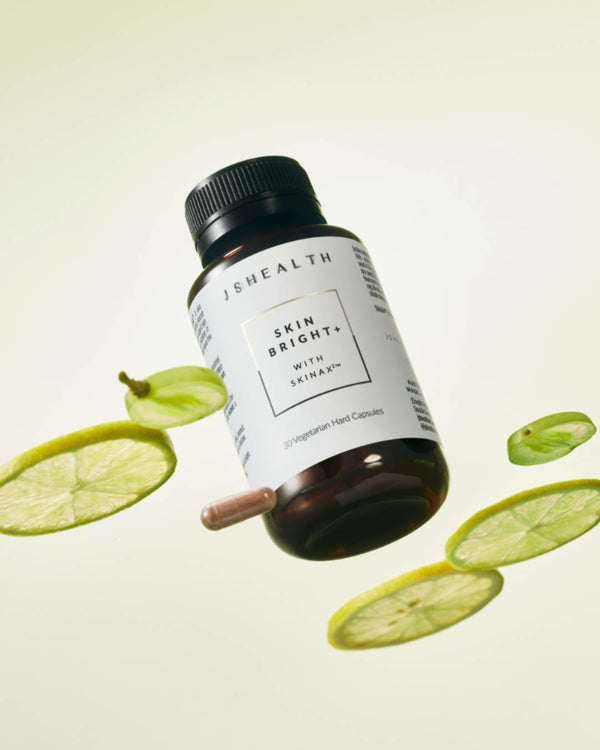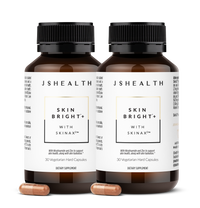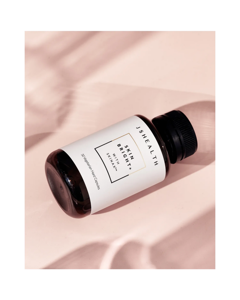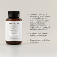 The JSHealth Skin Bright+ formula contains SkinAx2™, Vitamin C, Zinc, and Vitamin B3.