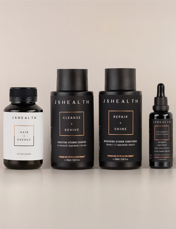 Our transformative 3-step system, created by the experts in ingestible haircare. First, take your ingestible haircare, Hair + Energy with breakfast each day. Then comes topical support. Lightly lather and moisturize your way to healthier, softer, more vibrant hair with our Purifying Vitamin Shampoo. Followed by our Nourishing Vitamin Conditioner to protect the scalp, detangle strands and add a surge of gloss-building shine. Finally, massage our Vita-Growth Scalp Serum at night (or morning and night for problem areas) for thicker, healthier hair with every drop.