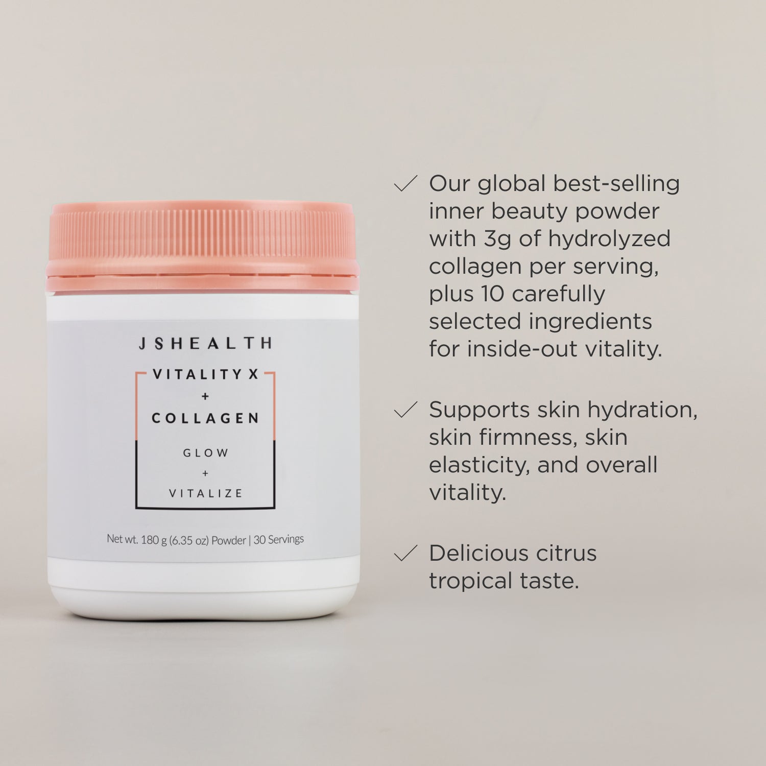Say goodbye to fine lines and wrinkles with Vitality X + Collagen, our signature all-in-one inner beauty powder.
